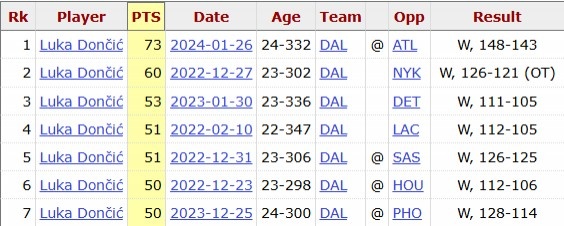 據(jù)統(tǒng)計,這是東契奇生涯第8場50+,而且這8場全勝!