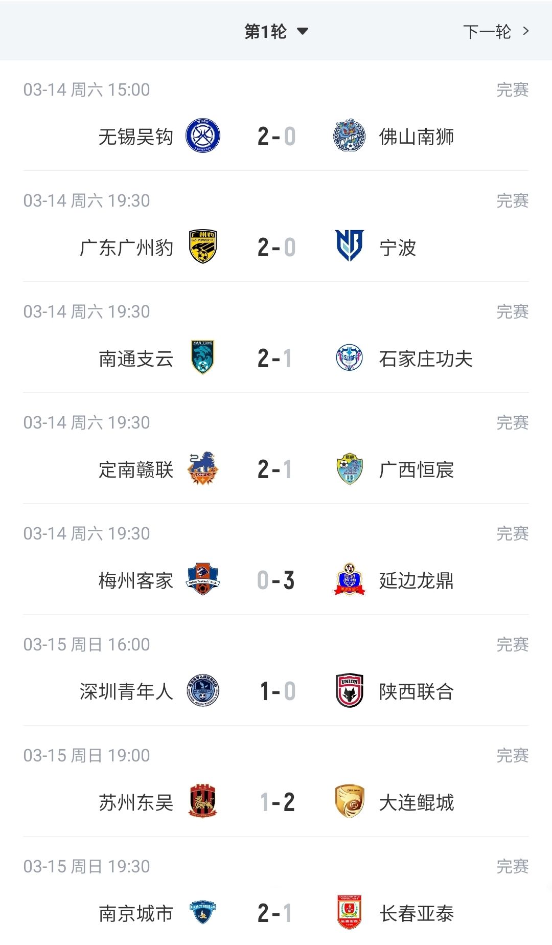 四支負(fù)分開局的球隊(duì)蘇州東吳、寧波、梅州客家、長春亞泰首輪全部告負(fù)。