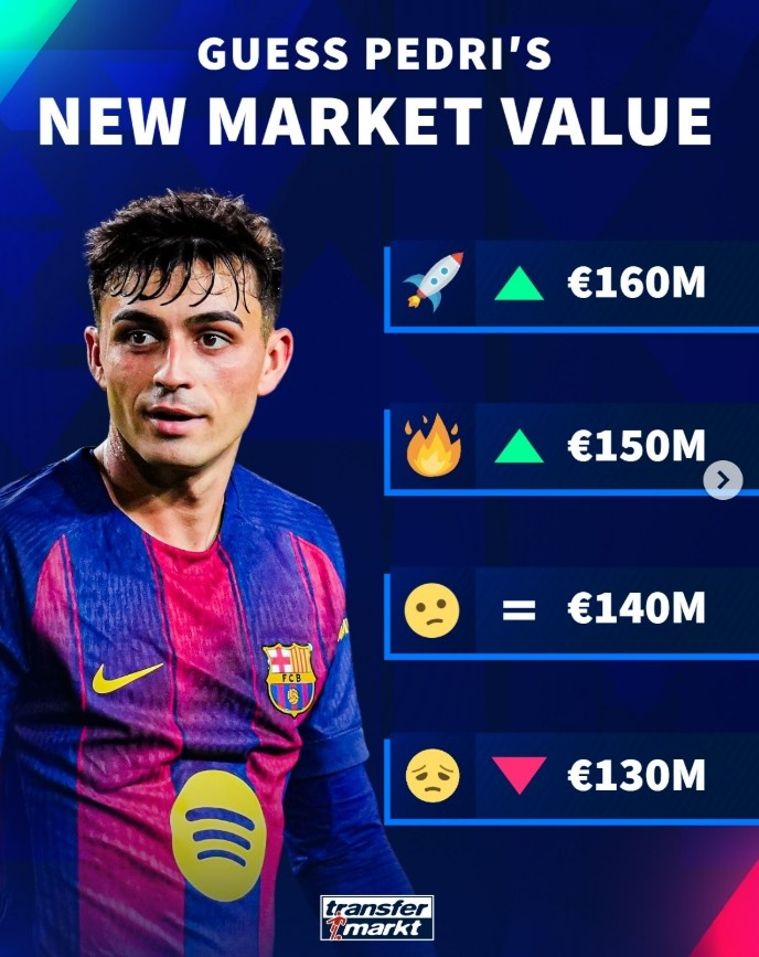 直播吧3月15日訊 德轉(zhuǎn)將在明日更新西甲球員身價,并預(yù)熱佩德里最新身價可能發(fā)生變化。