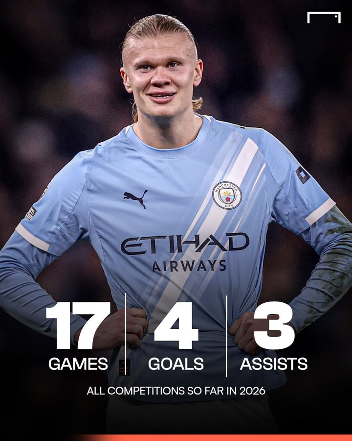 進(jìn)球網(wǎng)統(tǒng)計了哈蘭德2026年的數(shù)據(jù),這位曼城前鋒出戰(zhàn)17場比賽,打進(jìn)4球,助攻3次;2025年同期哈蘭德17場11球4助。