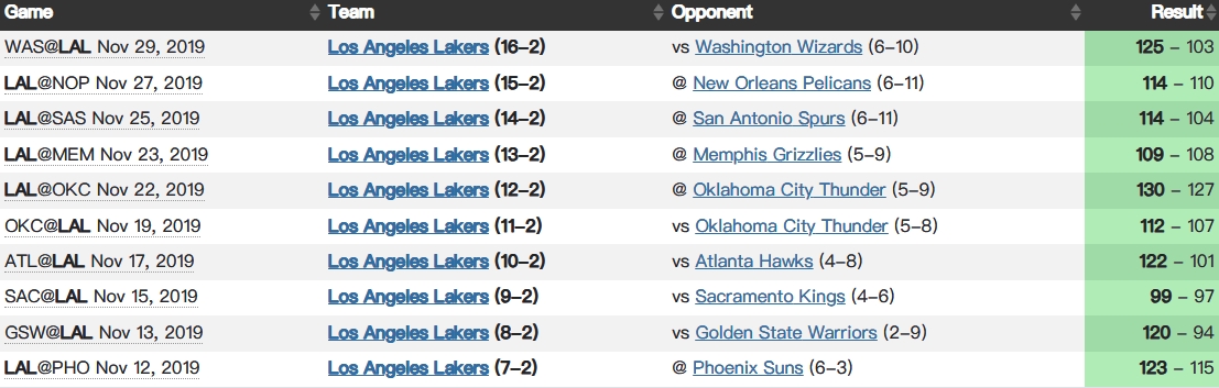 湖人上一次取得十連勝還要追溯到2019-20的冠軍賽季。