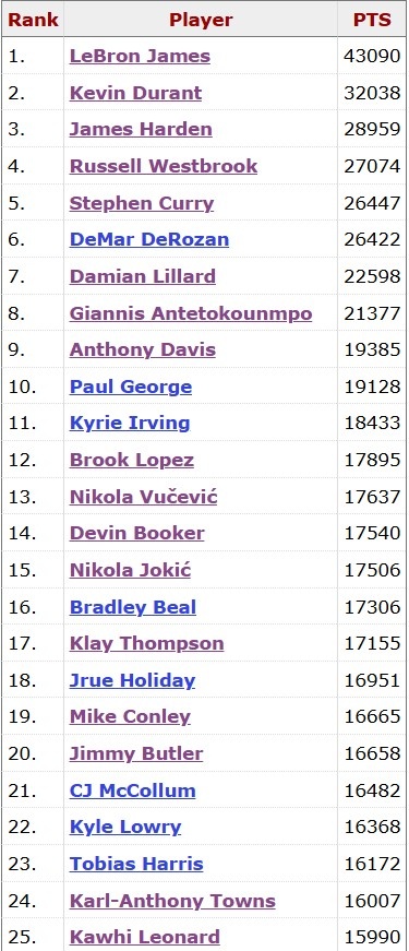 截至發(fā)稿,倫納德常規(guī)賽生涯總得分突破16000大關(guān),現(xiàn)役第25人。