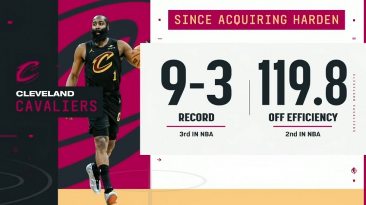 備注:哈登出戰(zhàn)的比賽 騎士8勝1負(fù)