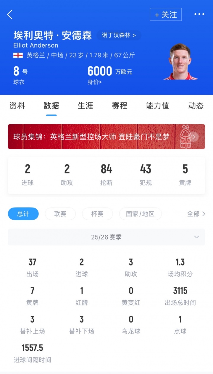 諾丁漢森林在2024年花費(fèi)3500萬(wàn)鎊從紐卡簽下安德森,預(yù)計(jì)球隊(duì)目前對(duì)他的估值至少是此前轉(zhuǎn)會(huì)費(fèi)的兩倍。