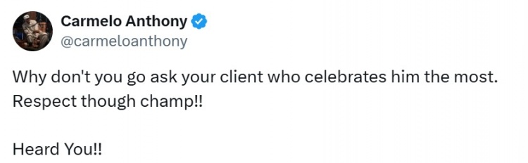 隨后,安東尼也回復(fù)道:“你為什么不問(wèn)問(wèn)你的客戶(hù),誰(shuí)最支持他呢。不過(guò)還是要尊重這位冠軍??!我聽(tīng)到了!”
