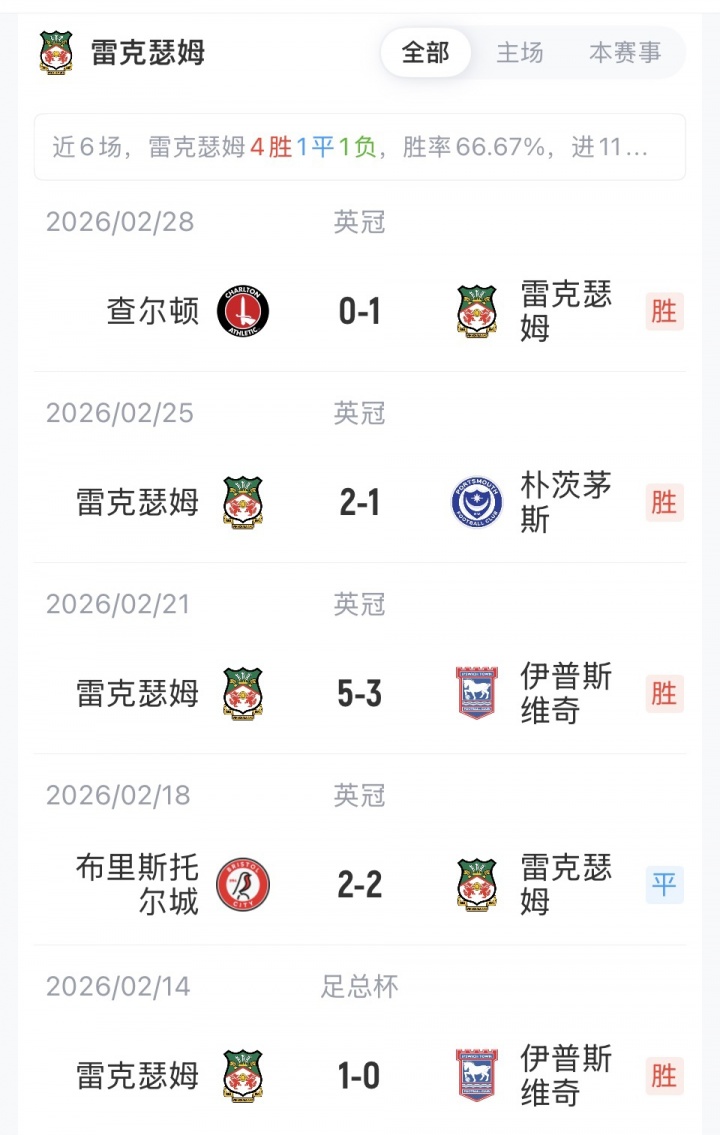雷克瑟姆首發(fā):1-奧孔科沃、5-多米尼克·海姆、2-卡勒姆·道爾、4-馬克斯·克利沃斯、27-路易斯·奧布萊恩、15-多比森、14-喬治·托馬森、47-瑞安·朗曼、26-扎克溫納、20-蘭斯伯恩、28-山姆·史密斯