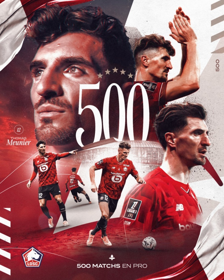 里爾官方寫(xiě)道:托馬斯·穆尼耶在本周末迎來(lái)了他職業(yè)生涯的第500場(chǎng)比賽,其中71場(chǎng)是代表里爾出戰(zhàn)。祝賀這位杰出的球員!