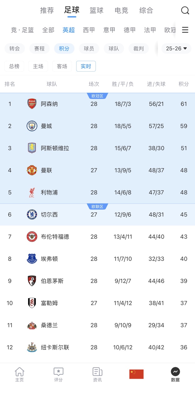 直播吧實時積分榜已全面覆蓋英超、西甲、意甲、德甲、法甲、新賽季中超,以及歐冠、歐聯(lián)、世界杯等熱門賽事。