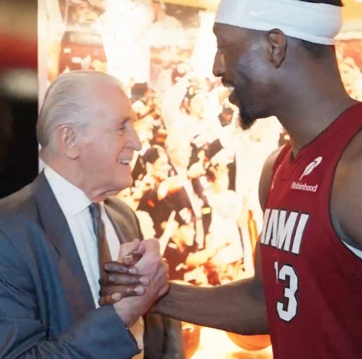賽后,熱火總裁帕特·萊利與阿德巴約見面時(shí)調(diào)侃道:“要是我,在你得70分的時(shí)候就會(huì)把你換下了!但是你做到了!干!”