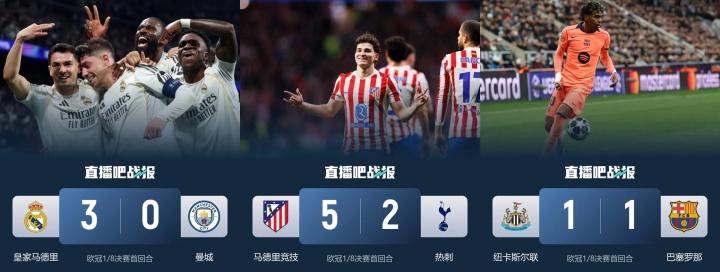 直播吧03月12日訊 歐冠16強首回合比賽戰(zhàn)罷,西甲皇薩競?cè)蠛篱T表現(xiàn)不錯,對決英超3強取得2場大勝和1場客平。