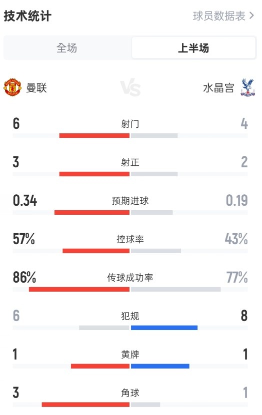 直播吧3月1日訊 英超第28輪,曼聯(lián)主場迎戰(zhàn)水晶宮,上半場紅魔暫0-1落后。