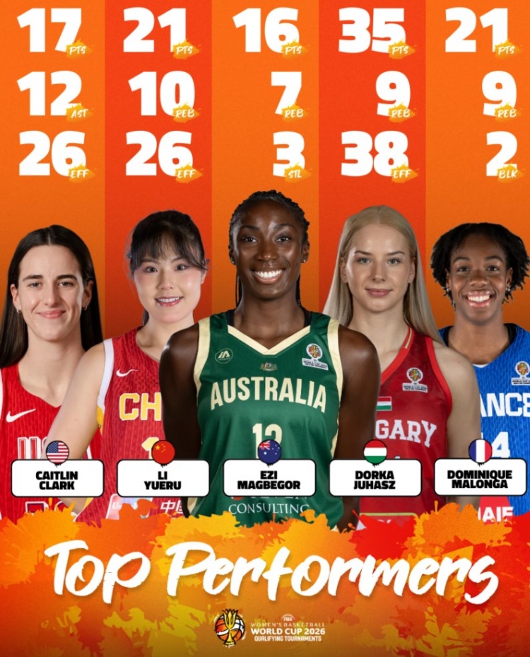 FIBA官方公布了世預(yù)賽首日的最佳陣容,李月汝、美國女籃的凱特琳·克拉克、法國女籃的多米尼克·馬隆加等入選。
