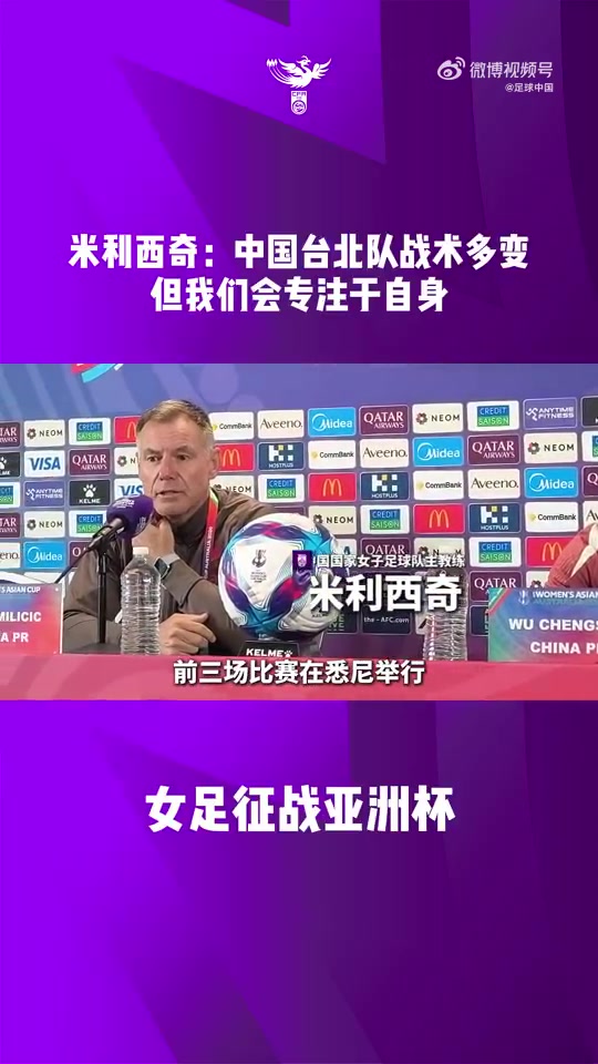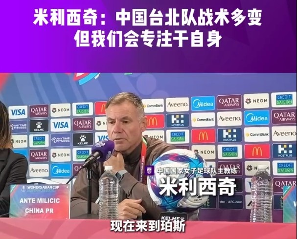 中國女足主教練米利西奇攜吳澄舒出席亞洲杯1/4決賽對(duì)陣中國臺(tái)北女足賽前發(fā)布會(huì)。