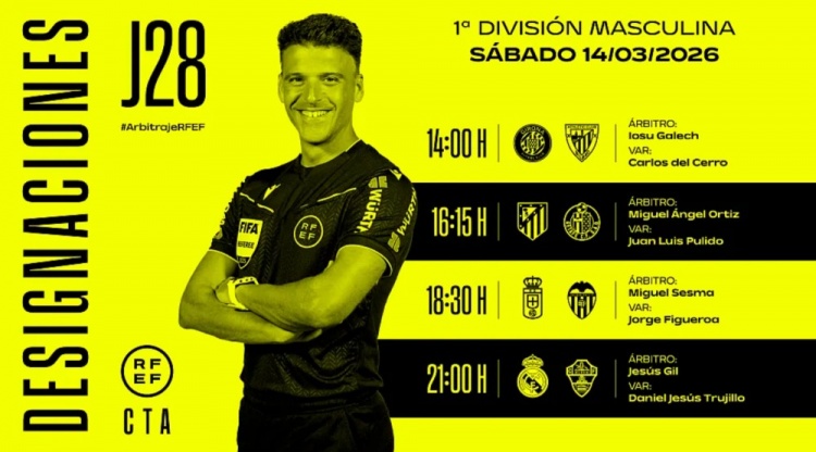 直播吧3月13日訊 西甲官方公布聯(lián)賽第28輪在當(dāng)?shù)貢r(shí)間3月14日進(jìn)行的四場(chǎng)比賽執(zhí)法裁判