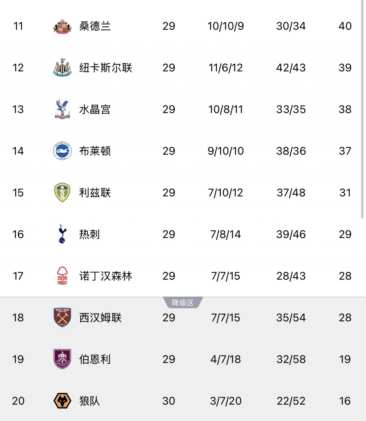直播吧03月14日訊 OPTA超算預(yù)測(cè)英超球隊(duì)降級(jí)概率,目前排名倒數(shù)前二的狼隊(duì)和伯恩利保級(jí)概率均不及1%,熱刺的降級(jí)概率為18.11%。