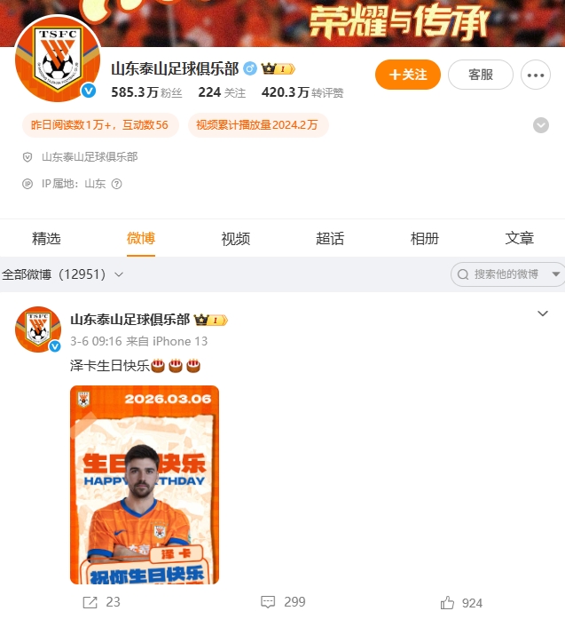 直播吧03月14日訊 中超第2輪,山東泰山主場(chǎng)2-1戰(zhàn)勝北京國(guó)安,取得開(kāi)賽兩連勝。許多球迷發(fā)現(xiàn),山東泰山官方微博沒(méi)有發(fā)布任何相關(guān)內(nèi)容。