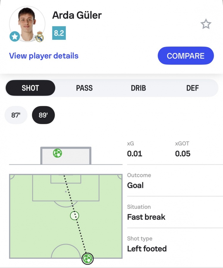 數(shù)據(jù)網(wǎng)站Sofascore曬出居萊爾射門(mén)路線圖,并調(diào)侃道:“我們可能需要重新設(shè)計(jì)球員的射門(mén)路線圖了,因?yàn)榘雸?chǎng)圖已經(jīng)放不下這腳吊射了?!?/p>