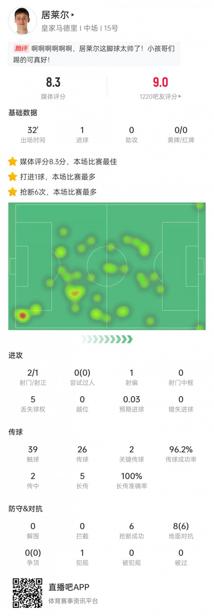 居萊爾本場(chǎng)比賽數(shù)據(jù):