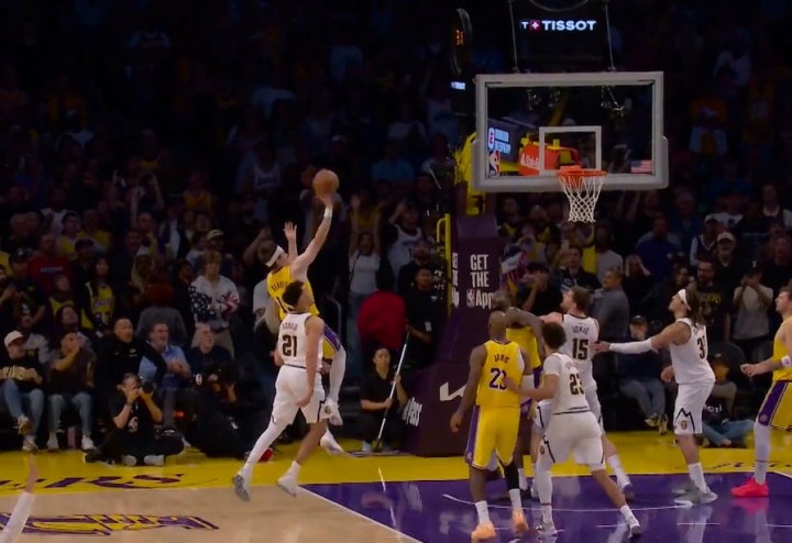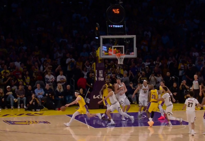 在湖人加時險勝掘金的比賽中,丹佛人在常規(guī)時間最后5.2秒領(lǐng)先三分的情況下選擇故意犯規(guī),將里夫斯送上罰球線,但小里罰中第一球后,第二罰故意不中并自己搶到籃板,隨后中投打進,將比賽拖進加時賽。