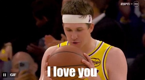 GIF-里夫斯1+2之后對著籃球說:I Love You!