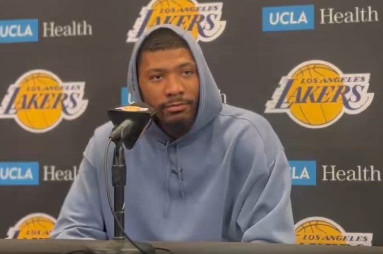 直播吧3月15日訊 NBA常規(guī)賽,湖人主場(chǎng)127-125加時(shí)險(xiǎn)勝掘金,賽后斯瑪特接受采訪。