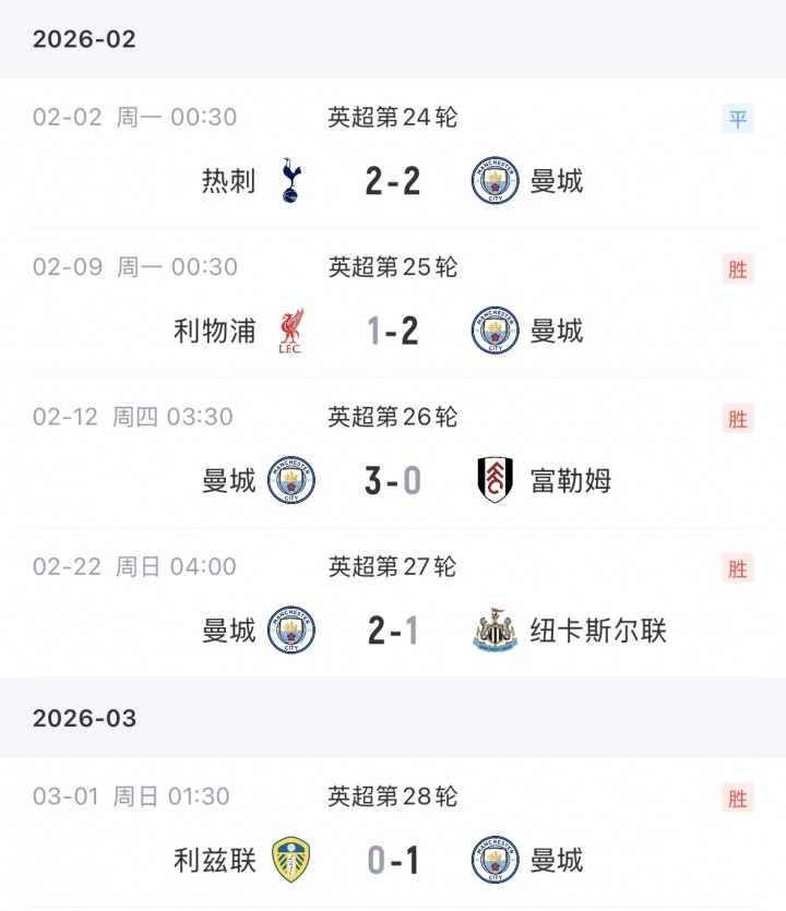 瓜帥2月戰(zhàn)績(jī):