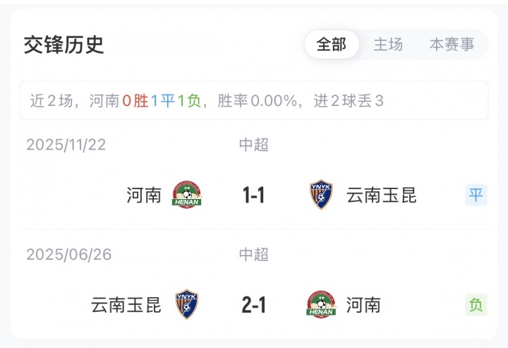 中超第1輪,河南2-1戰(zhàn)勝上海海港;云南玉昆3-1擊敗青島海牛。目前積分榜上河南負(fù)3分排在第12位,云南玉昆積3分暫列第3。