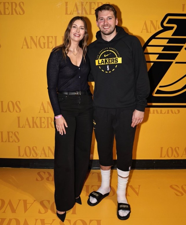 賽后,網(wǎng)壇名宿莎拉波娃和東契奇合影留念。