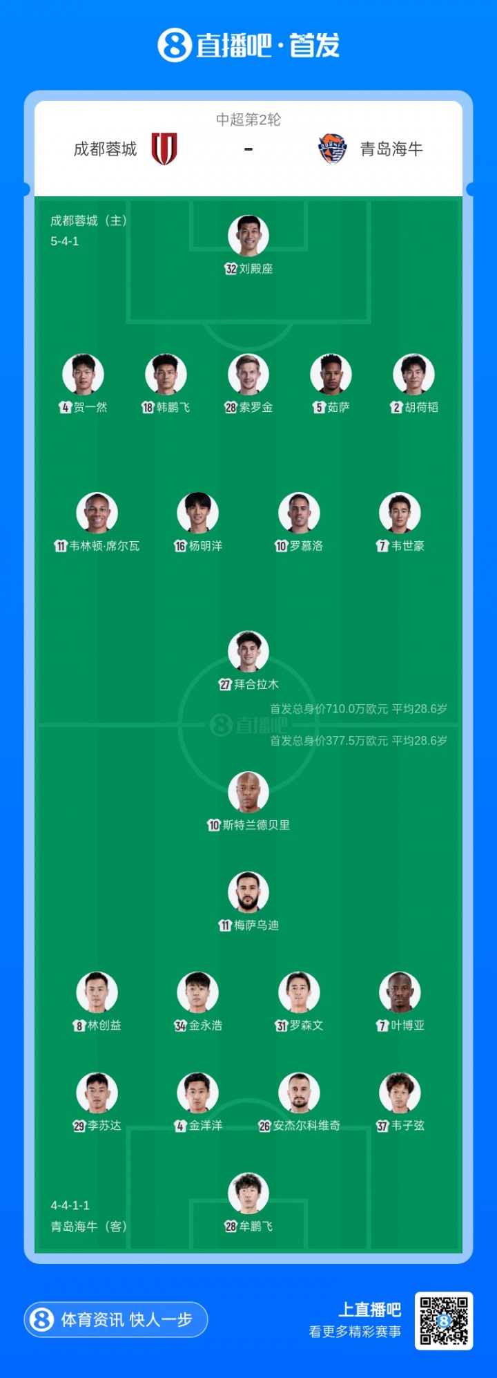 直播吧03月15日訊 北京時(shí)間今晚19點(diǎn)35分,中超第2輪,成都蓉城主場迎戰(zhàn)青島海牛,賽前雙方公布首發(fā)陣容。【兩隊(duì)均派出4外援先發(fā),蓉城方面拜合拉木迎來加盟后首次首發(fā);海牛方面,此前被美職聯(lián)處以禁賽的葉博亞未受影響,繼續(xù)先發(fā)出戰(zhàn)?!?/p>