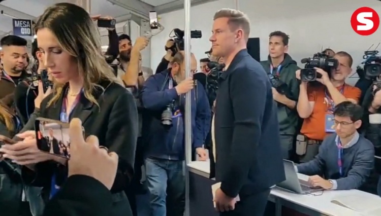 巴薩新一任主席選舉投票開啟,被外租至赫羅納的巴薩門將特爾施特根現(xiàn)身投票現(xiàn)場,但由于他的名字并不在更新的選民名冊之中,因此無法行使投票權。