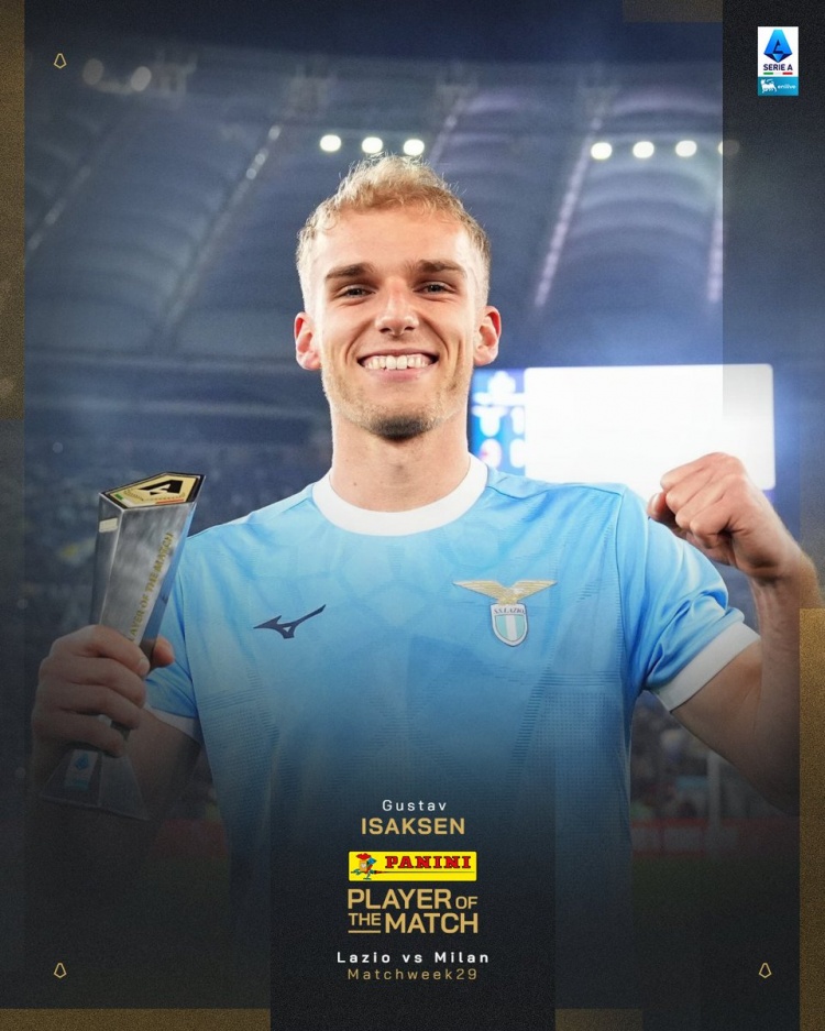此役伊薩克森為拉齊奧首發(fā)出戰(zhàn),攻入全場唯一進球,幫助球隊取勝,意甲官方宣布,伊薩克森當(dāng)選本場比賽最佳球員。