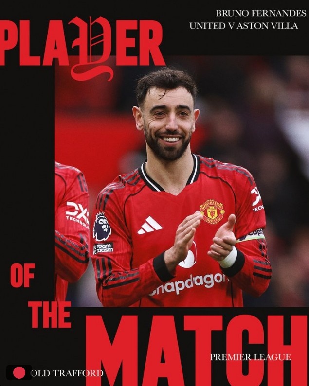 B費也憑借本場比賽的出色發(fā)揮,當選了曼聯(lián)官方評選出的本場比賽隊內(nèi)最佳球員。