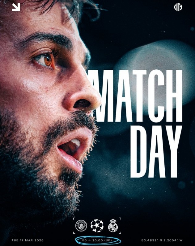 曼城官推也曬出海報為本場比賽預熱,海報中B席單人出鏡。曼城在首回合客場0-3不敵皇馬,本場可謂背水一戰(zhàn)。