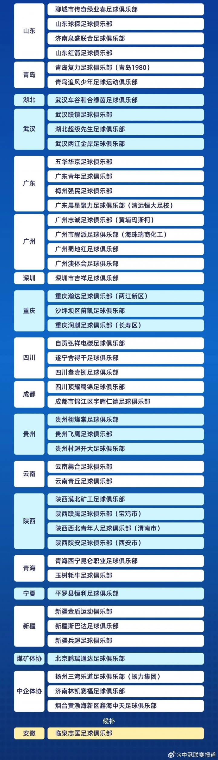 直播吧03月18日訊 中國足協(xié)官方公示2026年中冠聯(lián)賽報(bào)名俱樂部,80家報(bào)名俱樂部(含1家候補(bǔ)參賽)通過初步審核,恒大足校在列。