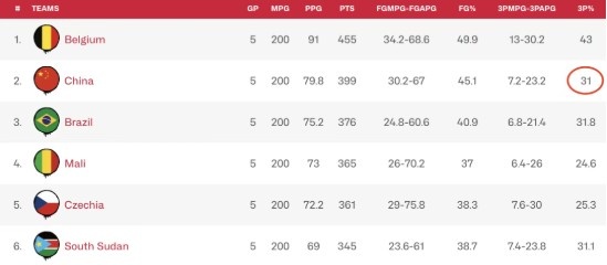 本屆世預(yù)賽,我們?nèi)置新手煌冻隽?1%的水平。如果沒(méi)有收官戰(zhàn)對(duì)巴西20投9中拉高了數(shù)據(jù),那么我們更為真實(shí)的三分命中率是28.1%......