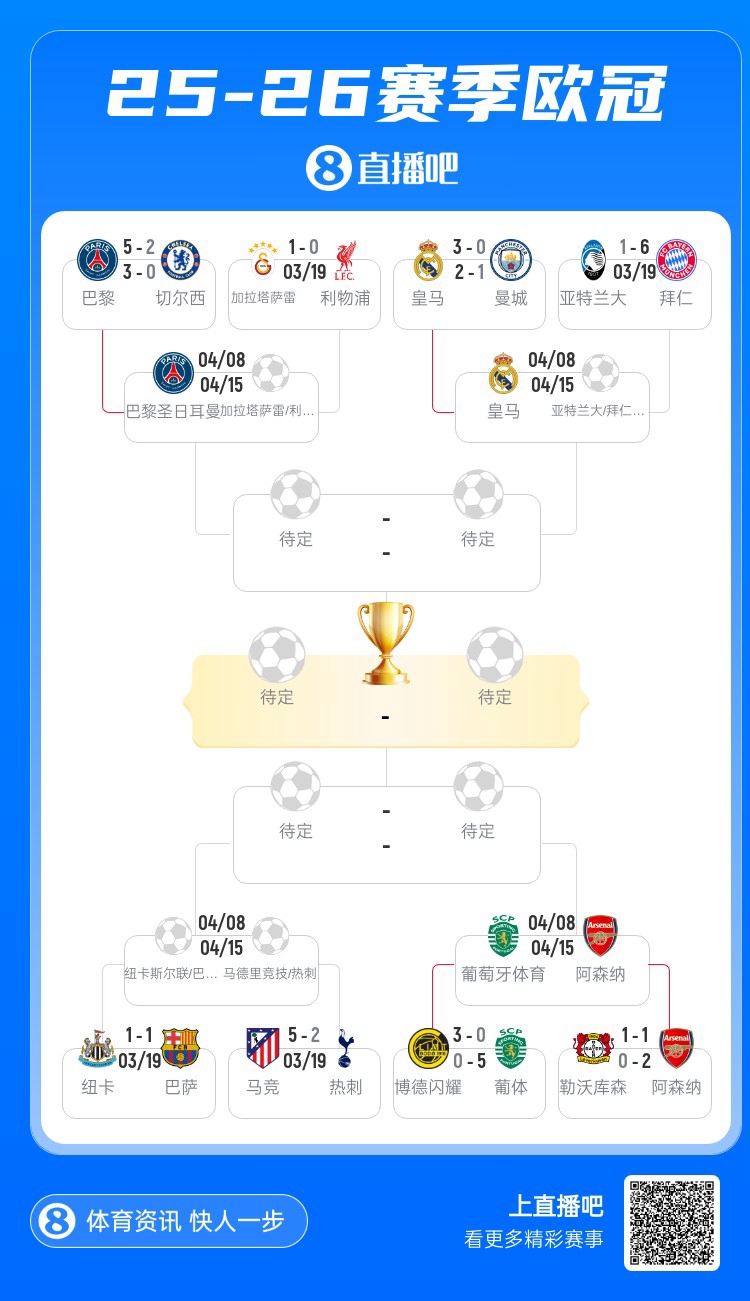 直播吧03月18日訊 歐冠1/8決賽次回合四場(chǎng)比賽結(jié)束,皇馬晉級(jí)靜候拜仁;阿森納對(duì)上葡萄牙體育,約克雷斯面對(duì)老東家。