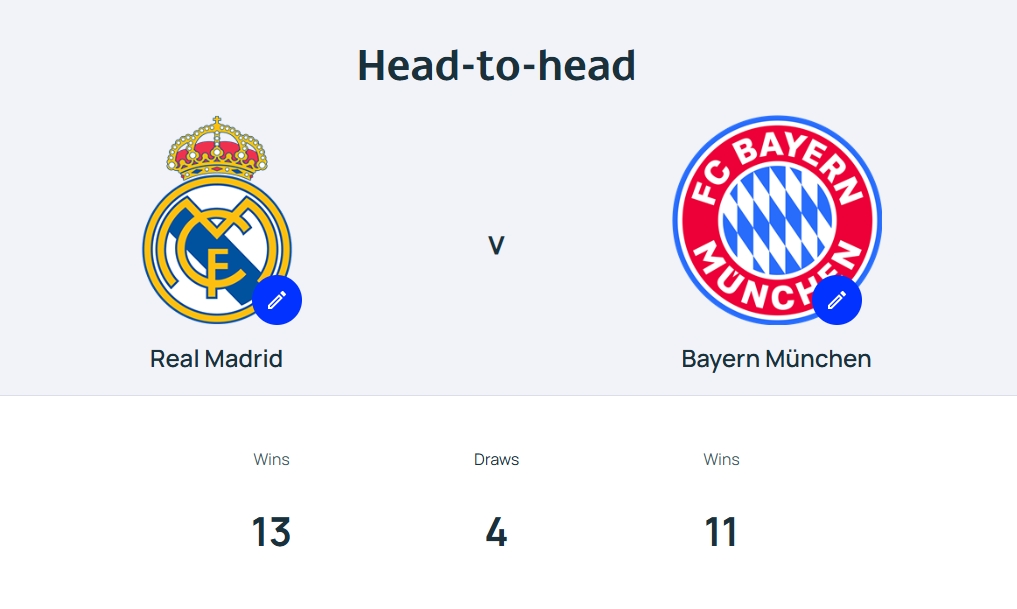 皇馬與拜仁在歐冠歷史上交手過28次,皇馬13勝4平11負(fù)占據(jù)上風(fēng),皇馬歷史上15次獲得歐冠冠軍,排列第一;拜仁6次奪冠,排名第三。