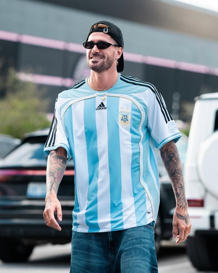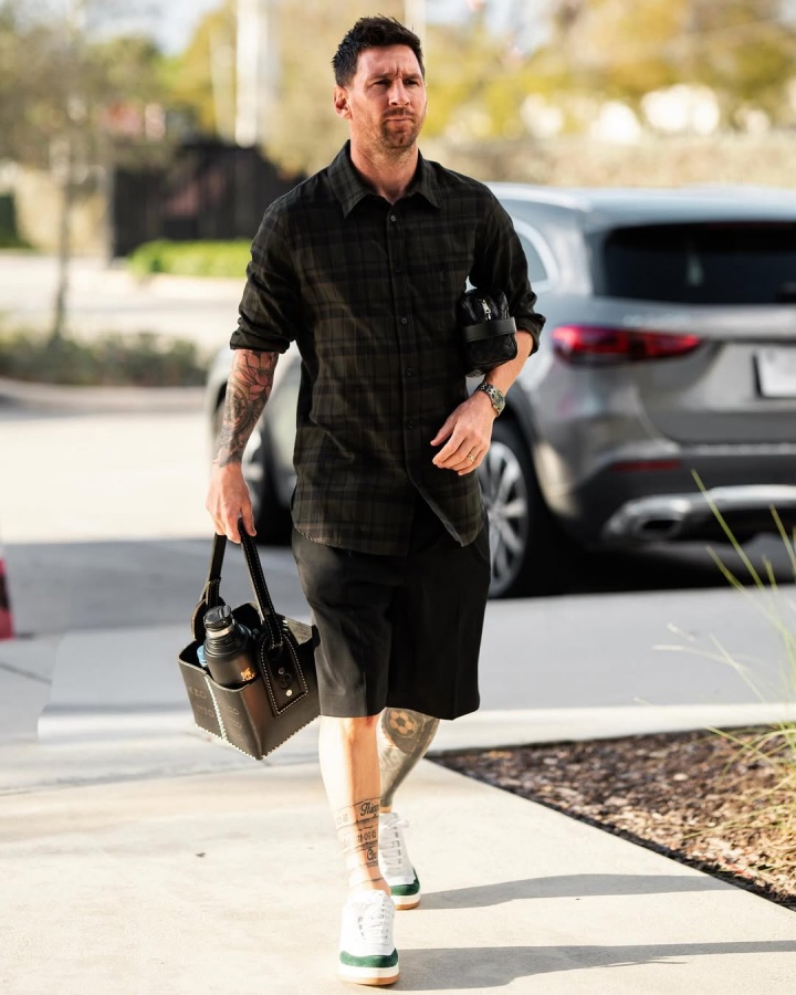 邁阿密國際官方曬出了球員們抵達(dá)訓(xùn)練中心的照片,其中梅西格子襯衫配短褲,德保羅型男身穿阿根廷短袖。