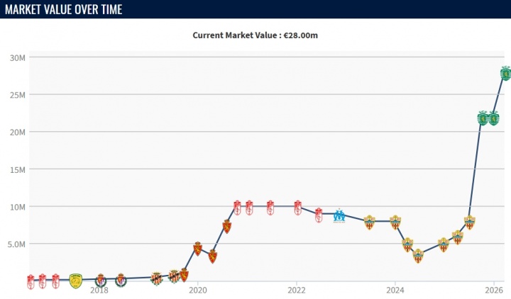 值得一提的是,在去年6月,彼時(shí)效力于阿爾梅里亞的蘇亞雷斯身價(jià)僅為800萬歐元,而如今不到1年的時(shí)間,蘇亞雷斯身價(jià)已經(jīng)上漲至2800萬歐元。