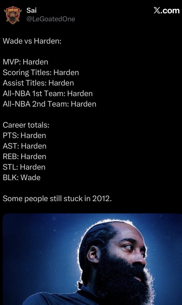 今天,貝弗利轉(zhuǎn)發(fā)了一組韋德和哈登多項數(shù)據(jù)對比圖,并寫道:“從來沒有不尊重任何人但是......”