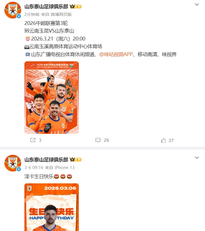 泰山官博時隔14天更新,曬出對陣云南玉昆的賽前海報