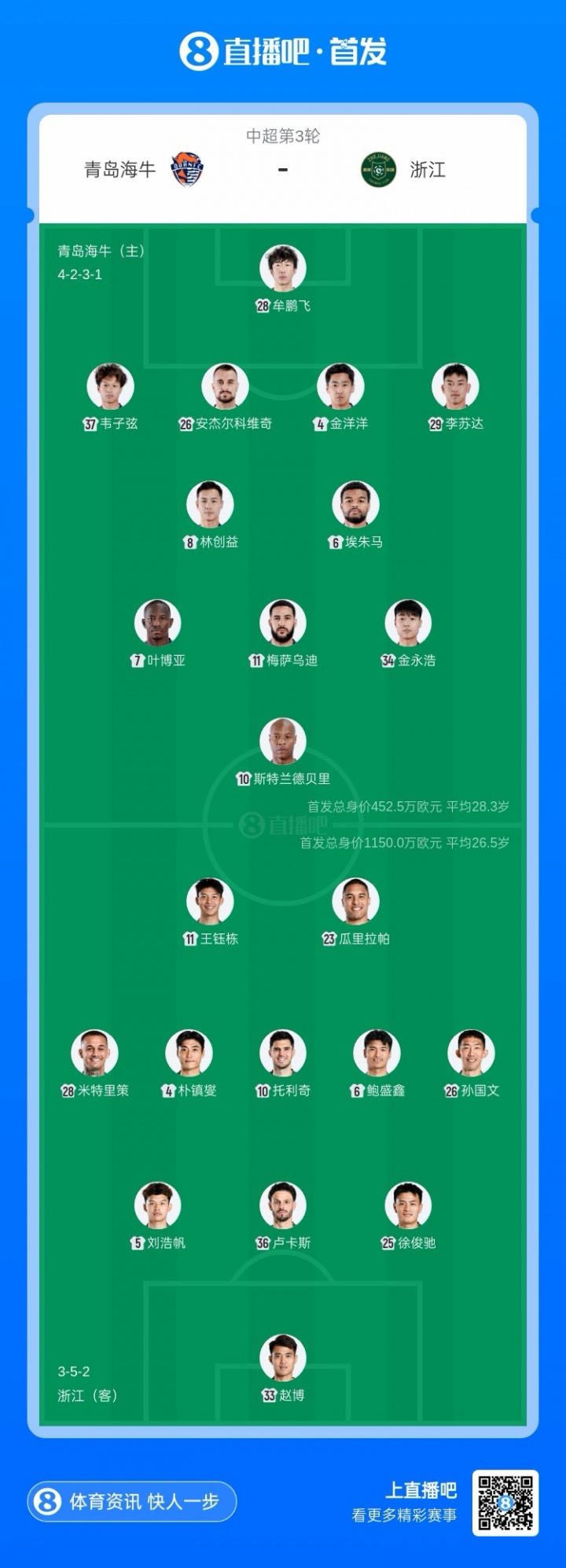 海牛vs浙江首發(fā):5外援PK!葉博亞先發(fā),王鈺棟、米特里策出戰(zhàn)