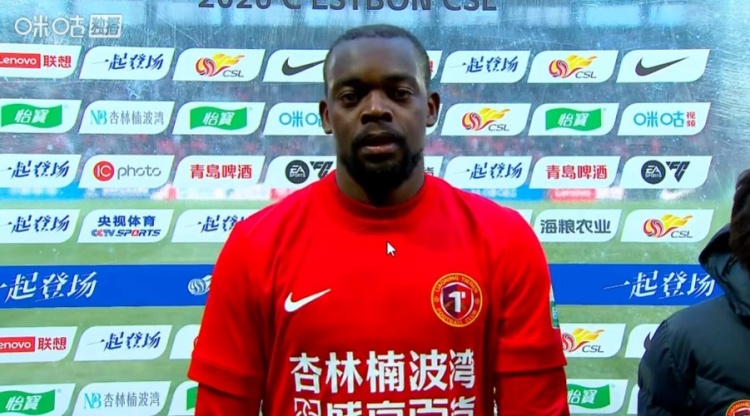 直播吧3月21日訊 本輪中超,遼寧鐵人3-0天津津門(mén)虎。賽后鐵人球員姆本扎接受采訪。