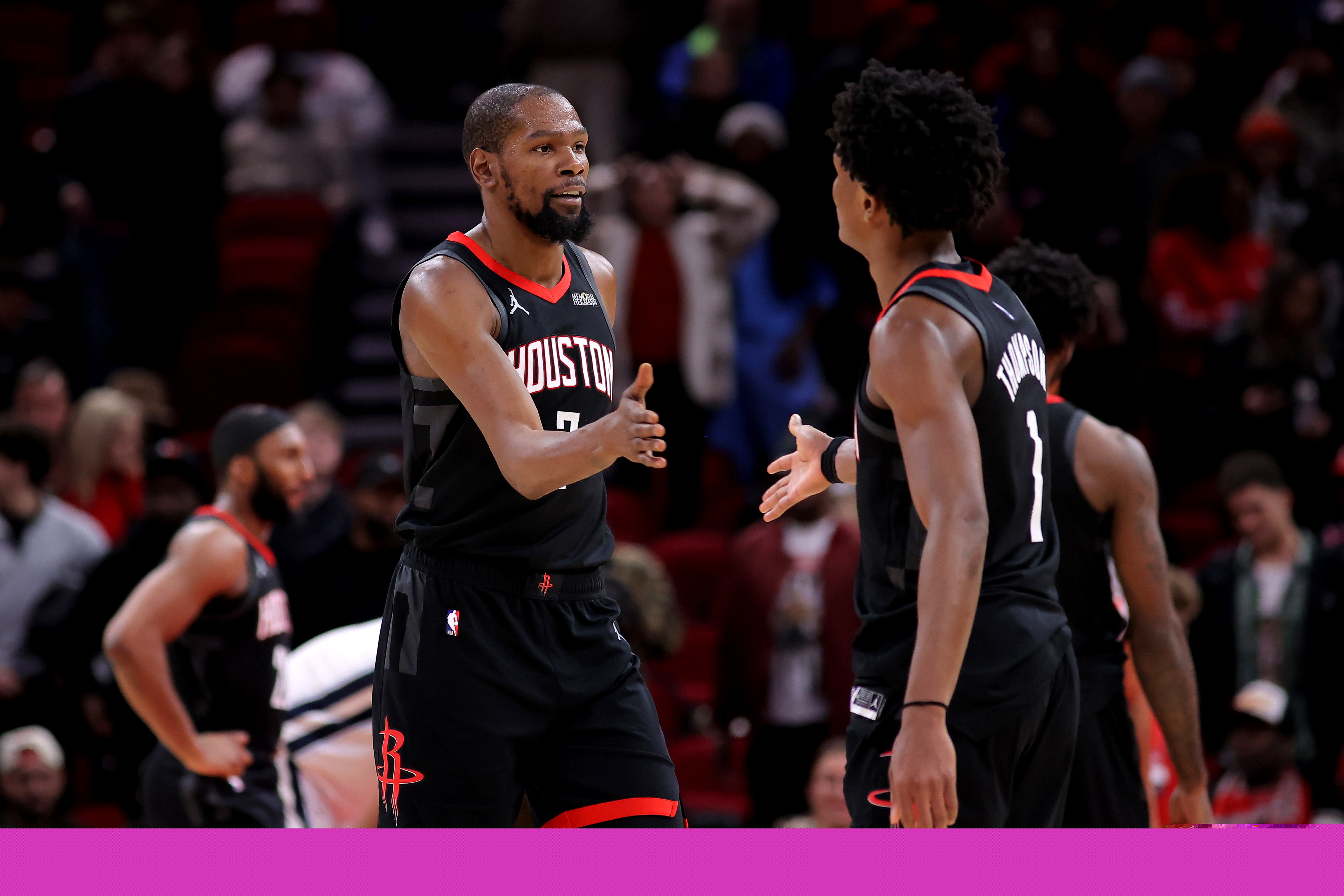 直播吧3月22日訊 火箭123-122險勝熱火。賽后,火箭球星杜蘭特接受媒體采訪時,談到了隊友阿門。