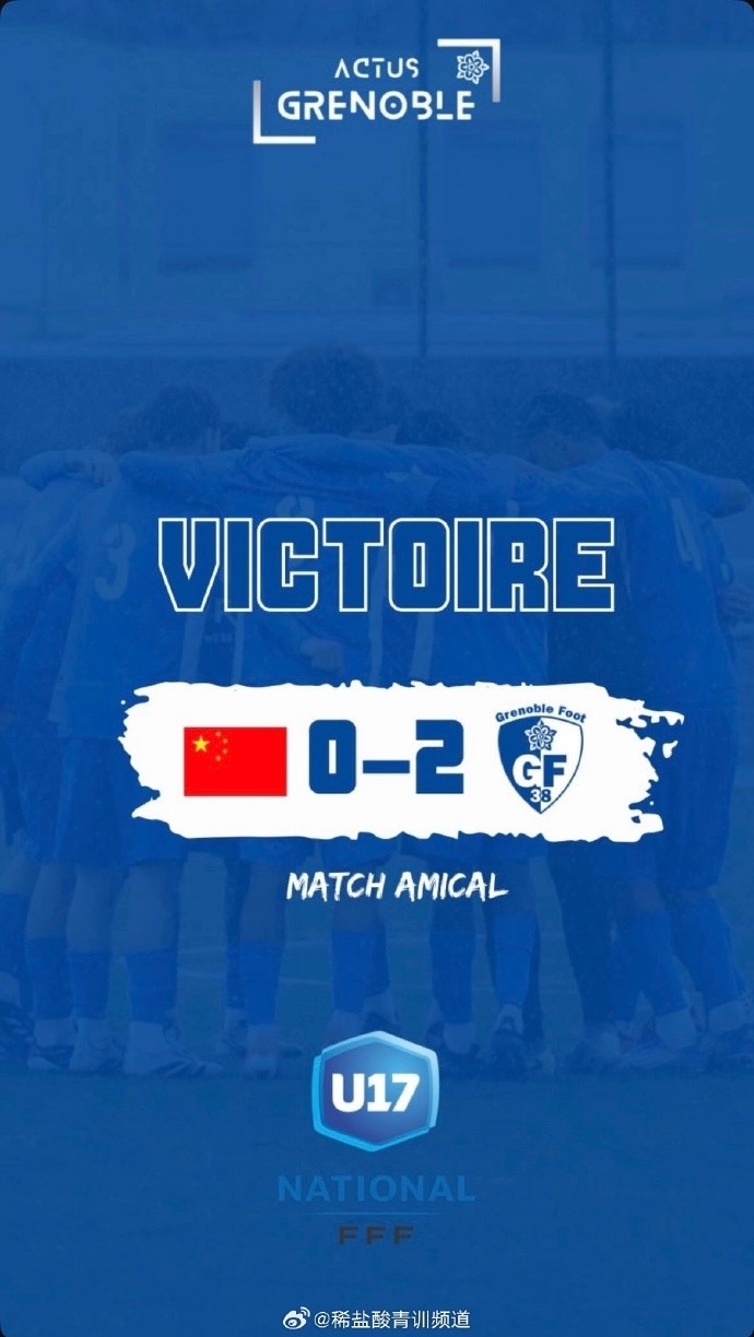 直播吧3月23日訊 據(jù)博主“稀鹽酸青訓(xùn)頻道”消息,U16國(guó)足熱身賽0-2不敵格勒諾布爾38 U17隊(duì)。