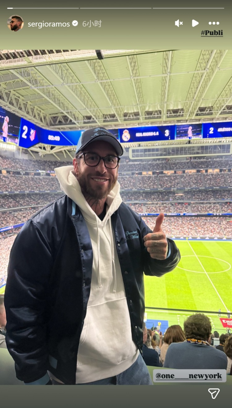 皇馬名宿拉莫斯回到伯納烏球場,現(xiàn)場觀看馬德里德比,他在社交媒體上曬出身處伯納烏的照片。