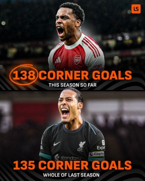 直播吧03月03日訊 今年英超,定位球成為各隊(duì)關(guān)注重點(diǎn)。據(jù)統(tǒng)計(jì),英超本賽季已有138個(gè)角球進(jìn)球。