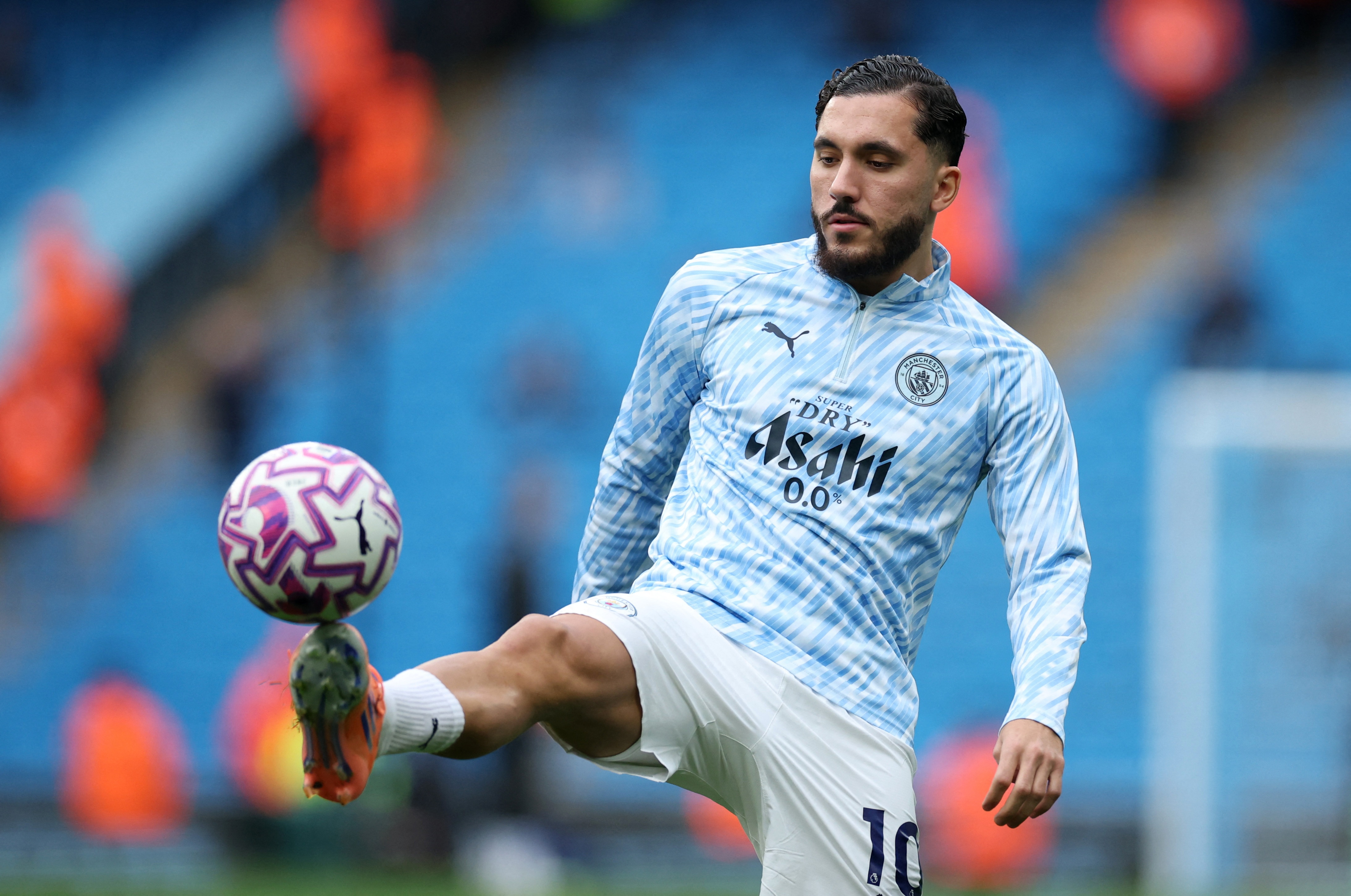 而之后他對(duì)謝爾基的反應(yīng)則截然不同。謝爾基本就是天生的表演者,即便他的足球天賦有時(shí)會(huì)讓他有炫技之嫌。當(dāng)曼城兩球領(lǐng)先掌控比賽時(shí),羅德里一腳斜傳找到左路邊線的謝爾基,他胸部停球,隨后開(kāi)始連續(xù)顛球。