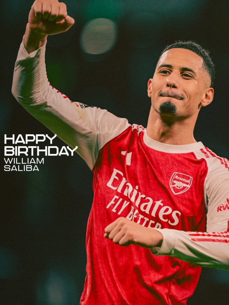直播吧3月24日訊 今天是阿森納中衛(wèi)薩利巴的25歲生日,阿森納官方社媒為他送上祝福。