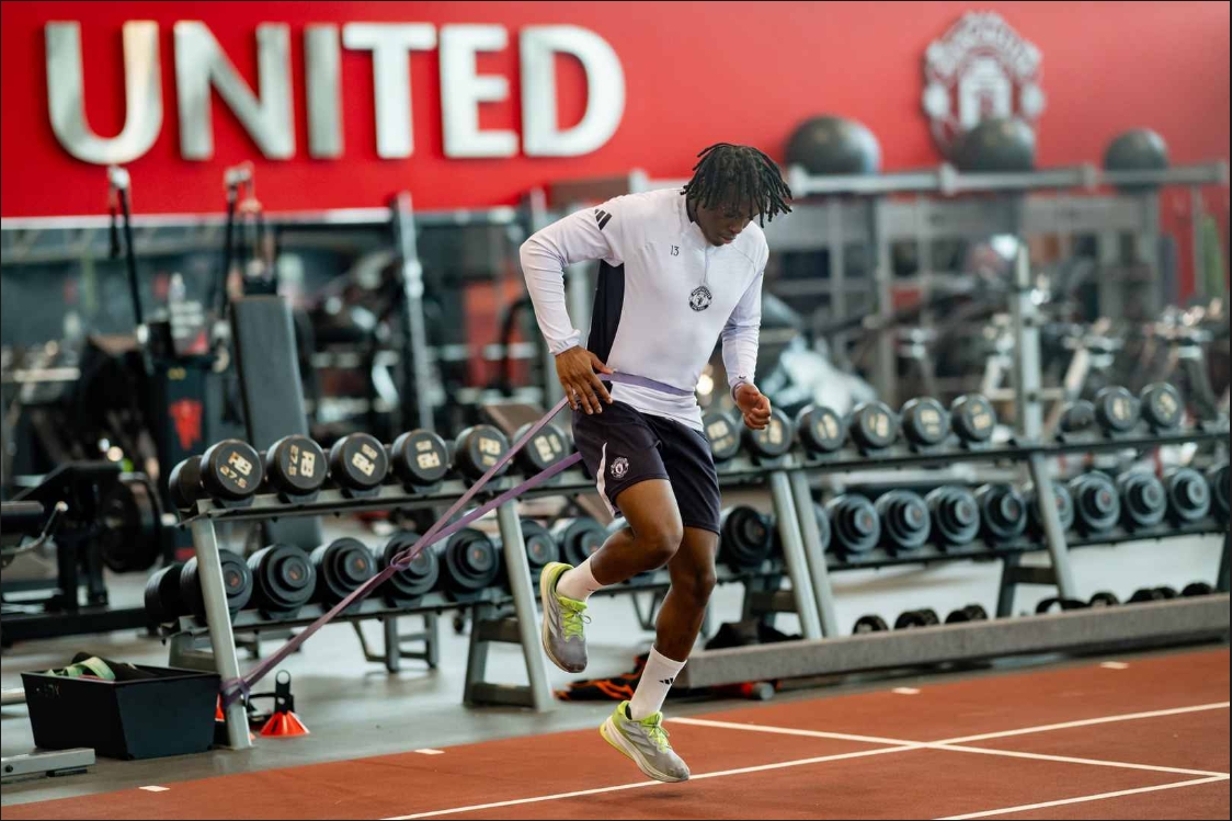 MUTV的攝像機(jī)出現(xiàn)在基地的健身房,記錄了多爾古正在教練的指導(dǎo)下進(jìn)行力量和體能訓(xùn)練的照片。